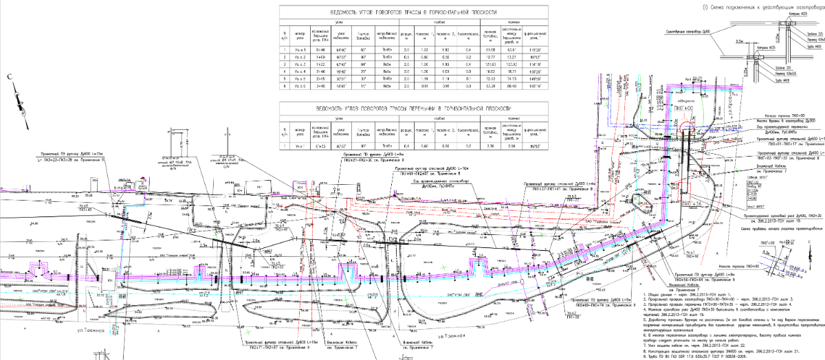 В состав работ входит: строительство подземного газопровода высокого давления D400 мм. протяженностью 3060 метров, в том числе 16 подземных переходв через автодороги методом ГНБ в стальном футляре D600мм.